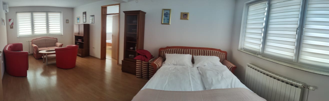 BIRO HM nudi apartman na dnevnoj renti od 110m2: dnevni boravak, 2 spavaće sobe, trpezarija i kuhinja. Stan se nalazi na drugom spratu stambeno-poslovne zgrade, ulaz je poseban. Lokacija apartmana je kilometar udaljena od aerodroma. Mogućnost spavanja za 8 osoba.